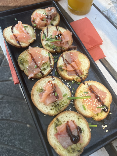Les moules étaient absolument délicieuses, et les autres plats comme les burgers et le filet de poisson étaient servis sur de magnifiques plateaux, ajoutant une touche d'élégance à notre repas. La décoration, avec ses verres et bouteilles stylés, contribue à une atmosphère agréable et chic.