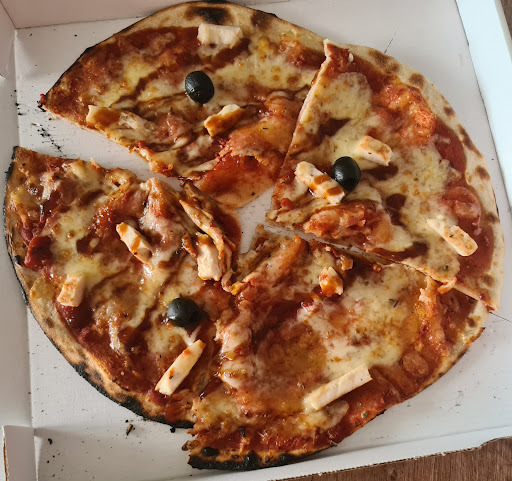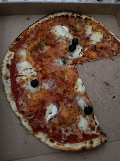 Les seuls bons points, prêtes à l'heure et moyens de paiement ( espèces, CB, Ticket Restaurant ).Pizza à emporter très peu garnie même pour le prix. Déjà en emportant les 3 pizzas de 29cm le poids me paraissait assez léger. Je sais que tout a augmenté mais là le bénéfice fait sur une pizza pour le " pizzaiolo ? " dépasse tout entendement. Nous avons pris une Polo ( poulet bbq ) dont les morceaux de poulet se comptent sur les doigts de 2 mains ( et pas des gros ) , une Norvégienne ( saumon Roquefort ) la photo parle d'elle même et une Catalane . J'avais pris le flyer pour le laisser dans le livre à la location mais il a terminé à la poubelle. Nous n'avons pas été malades mais très déçus....