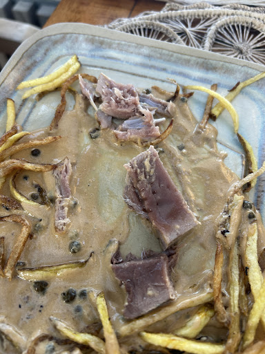 Les plats, eux, sont le vrai point noir. Le poulpe frit, affiché à 38 €, arrive sec, trop grillé, accompagné de seulement 5 pommes grenailles (contre 8 sur la photo du site, ce qui est déjà peu pour un tel prix). La sauce cajun, en plus d’être froide, était présente en excès : trois fois trop, noyant complètement l’assiette et refroidissant le poulpe au lieu de le sublimer, sans parler de la couleur qui n’avait rien à voir avec la carte. Un vrai gâchis sur un produit qui demande technique et justifie normalement un tarif élevé.