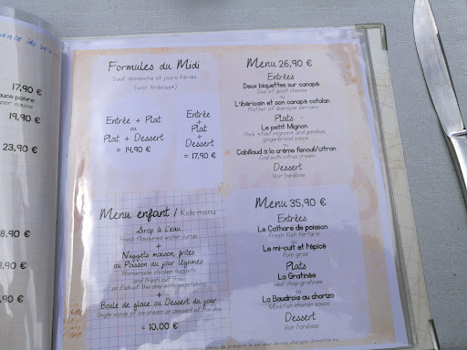 Read moreBonjour Aujourd hui nous avons découvert ce restaurant à l'emplacement très agréable. Nous étions 4 adultes et 2 enfants. Mes enfants de 8 ans et 10 ans n ont pas pu prendre le menu enfant. Remarque de la patronne ou serveuse " le menu enfant n est pas assez copieux pour les enfants" à bon normalement c'est le but d un menu enfant qui n a pas le même appétit qu' un adulte. Bon passons. Menu enfant affiché mais ils n'y ont pas droit. Elles prennent donc un plat trio merlan frit calamar frit et accras. L assiette arrive..pas d accras dedans. On se renseigne, normal il n y a plus d accras....sympa de nous avertir...le cuisinier a rajouté des calamars...a bon deux merlans plus 4 petits calamars.....heureusement qu' il en a rajouté. Vu le prix du plat. Bref mon avis n'engage que moi. Assiettes trop peu garnies pour le prix. Surtout que vous ne mangez pas des produits matière de luxe. Trop d attente mais cela n est pas l essentiel La sangria n a pas assez maceré car pas de goût d agrumes. Pour le reste passons.Prix largement excessif par rapport à la cuisine fournie même si bien cuisiné quand même. La personne était seule à servir un peu déborder mais rien de grave. Le mois d août quoi sur collioure. Petit avis d une personne qui côtoie la restauration française toute l année sur le foie gras,truffes,magretcanard etc... Pour celui qui paie sans regarder ce qu' il consomme ça peut plaire mais rien de grave pour nous la journée était belle...