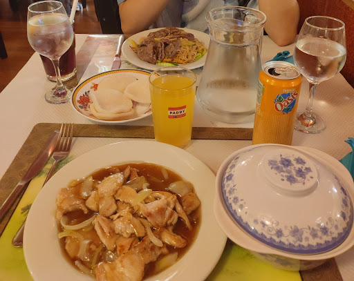 Une fois servis l’un comme l’autre nous ne nous somme pas régalé et les plats n’avais franchement pas de caractère, leurs goûts très approximatifs et passés. l’assemblage étais lié par une sauce sans saveur pour l’un comme pour l’autre, pour moi trop salé et pour l’autre (une gambas champignons noir et ananas) une sauce un peu épaisse sans goût d’ananas.