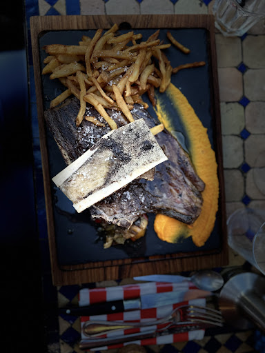 Mais ensuite, grosse déception : le plat principal annoncé comme un filet de bœuf, sauce miroir au Banyuls, ne tenait absolument pas ses promesses. La viande servie ressemblait davantage à un rumsteck, avec une texture dure et nerveuse, très éloignée de la tendreté attendue pour un filet. La fameuse sauce miroir était absente, et l’accompagnement se résumait à des frites maison. Certes, elles étaient bonnes, mais au final, je me suis retrouvé avec un simple steak-frites dans un menu à 45 euros !