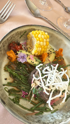 From start to finish, the meal was incredible. We were unable to sit on the breathtaking outdoor patio due to rain, but the indoor dining room was just as beautiful. The food and wine were absolutely amazing. Getting to experience French fusion cuisine (our week’s menu featured Japanese-inspired dishes) was unique and so delicious. We found it to be an excellent value for what we paid, and the three-course format to be very helpful for decision making.