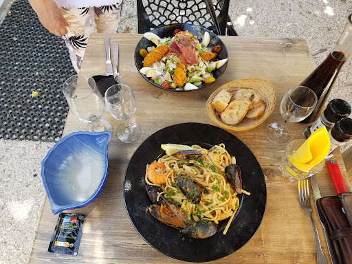 Dame die de zaal deed was zeer verward en stond zonder gère te geeuwen in de zaal terwijl wij al een tijd ervoor de kaart kregen. Ze vroeg toen ze deze bracht ook niet of wij iets wilden drinken en ook niet toen ze na lang wachten toch onze bestelling kwam opnemen. Een pizza en een pasta maar ook weer snel weg zonder vraag naar wat we wilden drinken en neen we hadden en kregen ook geen fles water. Er waren maar 2 tafels; 1x2 en 1x4 pers dus ook niet dat het druk was. Ze stond daarna te lachen en praten met de pizzaiolo in de zaal en ik ben dan maar zelf gaan vragen of we ook iets mochten drinken 🫣 We kregen ons eten maar nog steeds geen water noch brood en toen kwam ze met de ice tea voor de zoon en mijn half volle glaasje witte wijn. Ik vroeg brood en ze antwoorde dat het niet gebruikelijk was brood te eten bij een pizza 🫡 Neen mevrouw maar bij de pasta carbonara wil mijn zoon graag wat brood en wij willen ook graag de karaf water zoals u toch bij de Franse klanten op tafel zette daar... heel bot antwoorde ze et bien fallait demander plut tot alors. Ze vroeg ook niet of het lekker was en of we dessert of koffie wilden bij het afruimen... ik ben gaan betalen aan de Bar die afzonderlijk van de zaal ligt en zei tegen de baas dat het zonde is met zo een mooie zaak dat de service en de comportement van de serveuse zo triest is en die antwoorde je sais madame je sais mais c'est difficile à trouvé des mieux... Pizza was lekker van smaak maar wat sober van garnituur en de pasta flauw en niet warm genoeg. Geen aanrader dus! We hebben gelukkig veel betere restaurants getroffen in deze omgeving in onze 10...