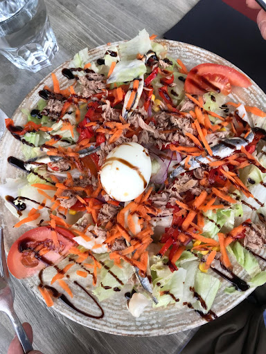 Read moreDans mon top 5 des pires restos dans lesquels j'ai pu manger. 40 min d'attente pour avoir simplement une boisson, et encore, j'ai dû interpeler une serveuse pour lui demander s'il était possible d'avoir AU MOINS quelque chose à boire pour patienter (en plein mois d'août, même pas un carafe d'eau). 1H20 plus tard, on nous servait nos plats : une salade aux crevettes et saumon avec 3 crevettes dedans, 2 pauvres feuilles de salade flétrie (et pourtant dieu sait si la salade verte est le truc le moins cher du monde). Absolument rien à manger, j'ai dû la terminer en 3 coups de fourchettes. Le tout pour 15 €. Je ne vous parle même pas de la "côte à l'os" également commandée, soit-disant pesant 500g (bonne blague), servie avec des frites surgelées de premier prix. Même le pain était ignoble, du pain décongelé de la veille, qui tombait en débris secs à peine on essayait d'en couper un morceau. A la fin, la serveuse a tellement eu pitié elle-même de ce qu'elle osait nous servir qu'elle ne nous a ni compté nos verres de vin, ni 4 € de la note finale pour nous laisser un compte rond... c'est dire ! Ah oui, et le vin blanc et rouge que nous avions pris.. rarement bu de la piquette pareille, nous n'avons bu qu'une seule gorgée. Hallucinant de faire de telles marges sur des produits d'aussi médiocre qualité. Nous serions partis bien avant si nous avions lu les commentaires de cette enseigne, mais malherueusement toutes les terrasses de Banyuls étaient pleines, et c'était l'unique où il restait de la place.. on comprend mieux pourquoi. Une...