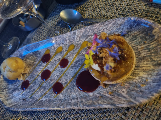 Read moreLovely small restaurant run by a charming couple. Warm welcome by the friendly hostess; we felt at home at once. Menu had good choices for us as pescatarians. And the food was delicious! The desserts were a work of art. We spoke with the chef, a delightful and interesting person, as he had lived in the US. We dined there twice and the second time was even better than our memories. Wish we could eat...