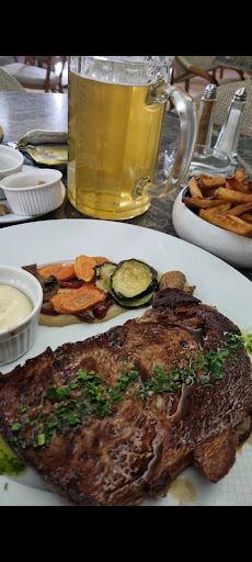 Je vous présente mon entrecôte de 300 g (28 €) avec une bonne portion de frites et une sauce aïoli 😘👌, ainsi que la fameuse bière de 1L (bien évidemment). Le menu du jour est plus adapté aux budgets moyens : 21 € pour un plat principal + entrée ou dessert. Vu les portions, cela suffit amplement aux gros mangeurs, je vous l’assure ! Je suis assez difficile avec le poisson, mais ici je n'ai jamais été déçu.