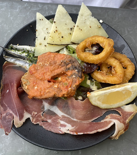 J’ai eu la mauvaise idée de faire confiance au menu à 28 € : une erreur regrettable. Entrée : une assiette de tapas composée de produits à la qualité très discutable, à l’exception du jambon ibérique et des anchois. Plat principal : une « pièce de bœuf » écœurante, au goût de poisson — probablement cuite dans la même graisse que le poisson. Dessert : un tiramisu prétendument maison… et sans doute fait maison, mais bâclé : seul un des trois biscuits était imbibé de café, le reste n’étant qu’un pot de mascarpone fade.