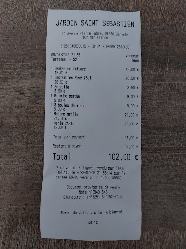 We had a great evening's dining at "Le Jardin". There are a dozen or so tables and soon after opening, all filled up within twenty minutes. This was a little overwhelming for the single serveuse but she handled it with smiles and speed as well as grace that seemed to be welcomed by all guests despite some slight ordering delays. It's a nice garden setting and when I mentioned to my wife it was a little dark for my old eyes to read some details of the menu, voila, the serveuse heard and moved a light so the problem was solved. The menu has about 10 entrees and the same number of plats; this is enough selection for the modest sized kitchen. The wine list is local and most are available by the glass so it is easy to pair with dishes without breaking the wallet. There's also a decent selection of beers. I started with tempura prawns paired with an IPA. The batter was a little overcooked but the prawns still moist; very nice. Plenty of fish on the menu and my merlin was moist and not overcooked. Paired it with a delicious tangy and slightly fruity Clos San Sebastien Inspirations Minerale. The kale flakes we're a nice texture contrast but the other legumes were slightly overcooked with little crunch left in the brocolli, carrots, and cauliflower. Although my plat was good, it was out-shone by the fabulous brioche perdue with caramelized apples which I paired with a glass of delicious Banyuls Grand Cru. Overall a wonderful evening with really good food, impeccable service, and great ambiance. A must go to Banyuls restaurant to which which I'll...