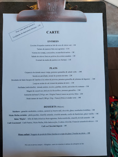 Read moreLe cadre est agréable, très joli restaurant. L'accueil est très agréable. On voit bien que l'on est dans un établissement ouvert à l'année et pas seulement 3 mois. La carte est cohérente avec l'utilisation de produits frais. Un très bon choix pour la carte des vins et sans exagération sur les prix. Juste un petit bémol au sujet du repas, l'éventail melon serano, le serano délicieux, par contre dommage pour le melon sans saveur et un peu ferme, dans cette région on s'attend à beaucoup mieux. Pour la brochette gambas St Jacques, pour moi les St Jacques c'est très peu de temps sûr chaque face, Et là c'était beaucoup trop, Par contre les petits légumes en accompagnement complètement froid dommage. Dans l'ensemble c'était bon sans être exceptionnel. Par contre félicitation pour le dessert. Que se soit la Charlotte revisité, ou bille de baba et fruits mentholé, un pur moment de bonheur. Un grand bravo, on termine le repas sur une très bonne note. Tout ceci n'est pas une critique, tout au plus un axe d'amélioration. Je pense même que l'on reviendra et plutôt hors saison, conscient qu'en haute saison rien n'est facile, entre les grincheux pressés, les appro sûrement plus difficiles. Donc ceci était juste un avis. Il manque peu pour que je donne 5 étoiles à la...