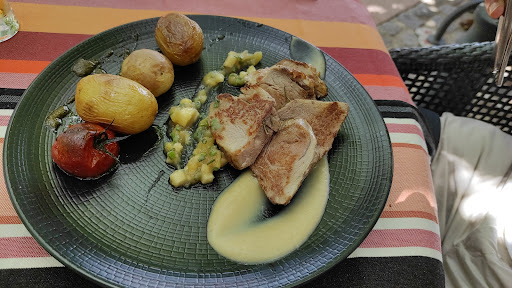 Agréable surprise par rapport aux expériences passées. Le menu à 35 euros (dans le cadre de la formule Lunch & Spa) était parfait. A noter en entrée un Boeuf tartare au couteau très bien assaisonné accompagné d’herbes fraîches, jaune d’oeuf mariné sauce soja et crème emulsion moutarde. Un régal. Les plats, cabillaud en panure "fish & chips", et le magret cuisson rosée parfaite (très tendre) avec réduction banyuls, étaient accompagnés de petites girolles parfumées et de légumes rôtis. Vrai problème sur le choix des desserts, on les aurait bien tous goûté! L’éclair façon Paris-Brest délicieux et la poire (glace) trompe-l’oeuil cœur caramel sur compotée poire vanille un régal ! Avec boisson et café compris un très bon rapport qualité prix ! Et bien sûr le cadre, à l’ombre des platanes avec vue sur l’Emporda en contre-bas , le golf et les sommets vers les hauteurs... Donc une belle expérience qui effacent les déceptions des années précédentes. Point à améliorer, la carte des vins. Très sommaire, sans surprise. Dommage pour une région de production qui regorge de pépites et les efforts...