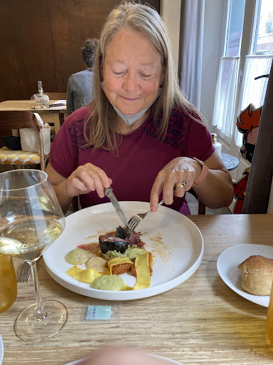A revisit after enjoying a great meal here years ago . The lady owner is very serious and careful as regards Covid virus protection ,can’t fault that . The reception was startlingly cool and authoritarian the room and table setup austere and school like . The food superb and very adventurous.