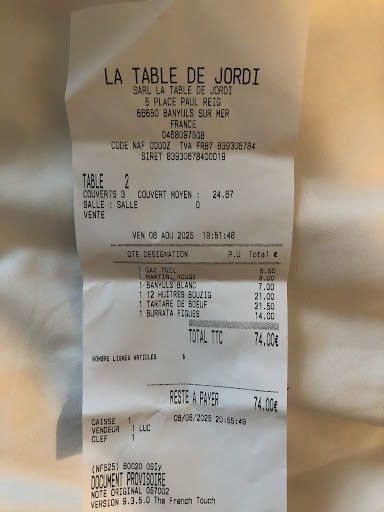 Mais ce qui m'as plutôt vexé, c'est d'être pris pour une vache à lait. Nous sommes 9 adultes, je vous laisse regarder la note. Nous avons pris des apéritifs, du vins (6 bouteilles) ainsi que des digestifs (8 get a 6.5€ la dose). Il ne nous a rien été offert. Ni un sirop, ni un café, rien. Un petit geste aurait été apprécié, encore une fois nous venions régulièrement, et à chaque fois des notes similaires. Lorsque j'ai fait la remarque à l'un de nos serveur la réponse à été lunaire...