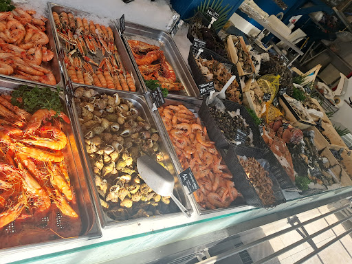 Wij hebben in de middag gereserveerd voor de 2e avond van ons verblijf, met 4 personen hier gegeten en gedronken. We hebben alles besteld wat ons lekker leek/wat we nog niet eerder hadden gegeten. Het personeel was super vriendelijk en legde alles goed en uitgebreid uit. Ook als we ergens van bv. maar 1 schelpje wilden proberen, was dit geen enkel probleem. Onze ober heeft heerlijke wijn geadviseerd bij onze maaltijd (Clos de Fées, waar we de volgende dag naar een proeverij zijn geweest!). Al het eten was super vers en ontzettend lekker. Eerst kregen wij de koude hapjes of kleine gerechtjes en bij de 2e ronde de grotere en/of warme gerechten. Bij elk gerecht kon je kiezen uit frites of gegrilde groenten van het seizoen (ik zou zéker de groenten aanraden, deze waren verrukkelijk). Alles wat we aten was heerlijk bereid, al dan niet met bijbehorende marinade/sausjes. Van alles was er voldoende en als je meer wilde, hoefde je maar te vragen. Het concept is dat je in de viswinkel uitkiest wat je allemaal wilt eten/proberen. Het vriendelijke personeel heeft overal een goede uitleg en smaak omschrijving bij als je nog niet weet wat je te wachten staat. Wij hebben die avond zO lekker en gezellig gegeten, dat wij de volgende avond (deze keer met ons 2en) weer zijn teruggekomen voor nog een verrukkelijke maaltijd. Thuis (in Nederland) kies ik zelden (eigenlijk nooit) voor een vismaaltijd, omdat ik weet dat de lekkerste vis -altijd- op vakantie, het dichtst bij waar het gevangen wordt, gegeten wordt. En deze keer heeft het wederom bevestigd. Super vers, heel veel variatie en heerlijk bereid! Zeker een aanrader voor iedereen die van vis houdt! En voor de andere mensen hebben ze ook 'Fish & Chips'.. maar ja, dat zou wel een beetje zonde zijn van je bezoek aan dit...