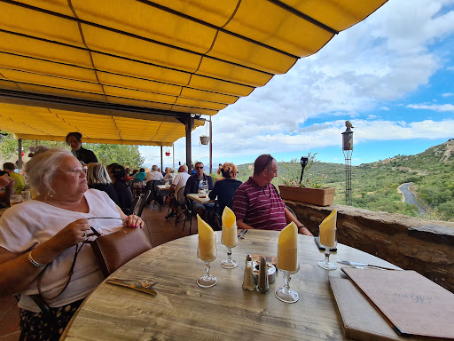 This restaurant is within an old walled village with no direct car access. There is a central car park about a 10 minute walk from the resteraunt. Going through the narrow gate into the cobbled street, there are a few small artisan galleries and a wine merchant. If you want to eat and sit outside looking over a beautiful valley and nearby hills, you need to BOOK. The menue offer a good range of seafood dishes , grilled meats, and a selection of Catalan dishes. The desserts are impressive. The sraff are engaging, friendly, and efficient. I cannot recommed this restaurant too highly. Four of us spent an ideal three and a half hours having lunch in a beautiful l location, enjoying wonderful food. The only downside is that the route to the resteraunt was challenging for a member of our group who uses...