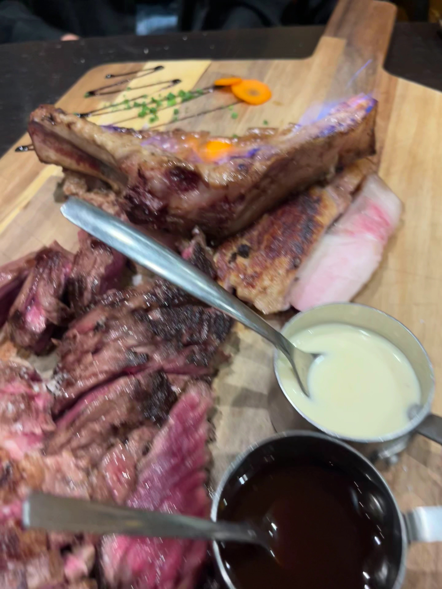 Verdict Bœuf & Cow shows unrealized potential. The beef rib was overpriced for its quality—an entrecôte would likely offer better value. With simple improvements in meat preparation, vegetable handling, tableside service coordination, and outdoor comfort, the restaurant could deliver a substantially better experience.
