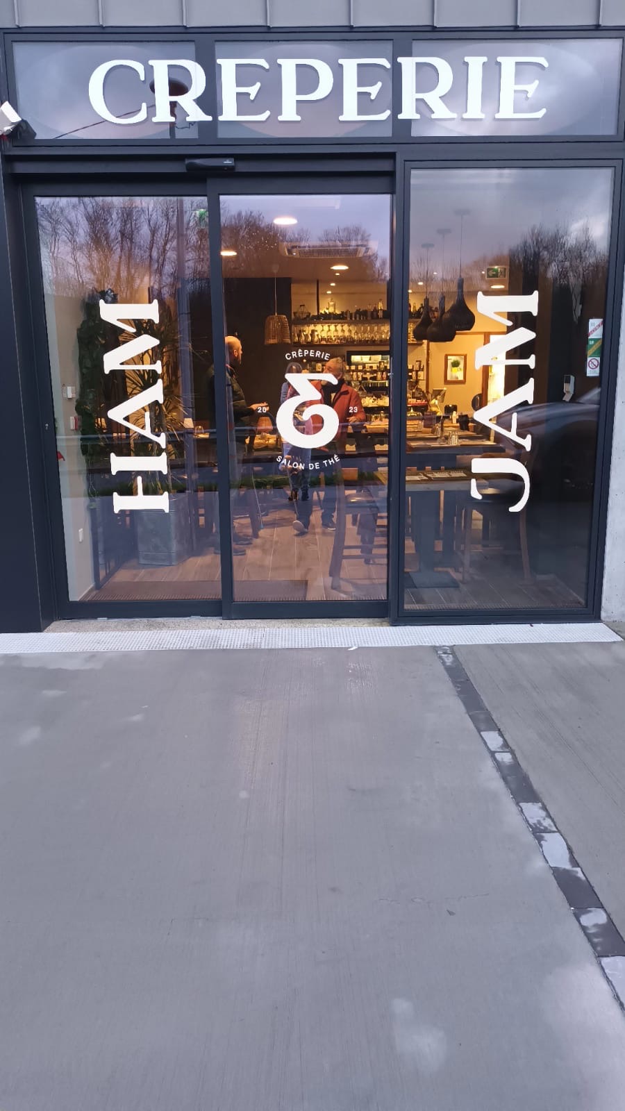 Read moreThe Ham and Jam restaurant is in walking distance from the Pégasus bridge. The kids had ice cream crepe’s and the wife and I had a croque monsier. The food was excellent, the staff were welcoming and spoke English. The service however was a little slow, and sitting outside the only view was of the concrete path...