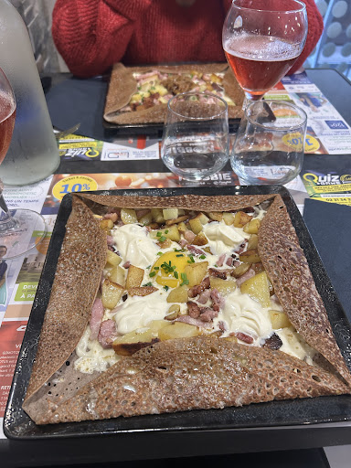 Amateur de crêperie nous avons été déçus par cette dernière. La crêpe Bretonne n'en porte que le nom et n'a malheureusement rien à voir avec la crêpe traditionnelle. La compôte que le chef incorpore à la crêpe est écoeurente car trop présente avec des bouts de peau de pomme et sans goût (j'ai été dans l'obligation d'en retirer pour pouvoir finir mon assiette). Celle à l'andouillette et au St nectaire ne nous a pas ravi (andouillette non préparée et St Nectaire trop fort). La savoyarde était quand à elle plutôt bonne malgré une crêpe trop cuite voir brûlée à certain endroit (la serveuse nous a expliqué que cela était normal car c'était la conséquence d'une cuisson à base de miel mais je n'en suis pas du tout convaincu). Le cidre doux était de bonne qualité et la crêpe créole très bonne. La personne en salle était professionnelle, sympathique et agréable. Conclusion une crêperie de quartier sympa mais pas une...