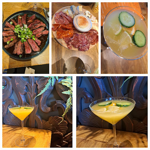 Read moreC'est un bar incontournable a Caen, un lieu a découvrir a tout moment. C'est top, on y est bien accueilli par toute l'équipe. Le décor est original, un assortiment de décoration qui nous fait voyager, dans l'exotisme, la jungle par les couleurs, les plantes, les lumières, et le tout associé à la modernité. Quelle belle alchimie. En solo, en couple, avec des amis, des collègues de travail...on y fait bien à faire la fête, à discuter, en se laissant porter par de belles sonorités musicales. Qui se mélange joyeusement avec les murmures, les confidences, les bavardages de la clientèle. Qui se veut agréable, respectueuse...un lieu d'adulte correct. Autant de surprises visuelles, qu'en bouche, en savourant, en dégustant les mises en bouche, au notes variées assez surprenantes. Les cocktails, n'en parlons pas...je voulais être surprise, j'en ai eut l'eau à la bouche. Je me suis laissé transporté de plaisir. C'était bien présenté, bien servi, avec le privilège de connaître le détail de nos assiette, si bien expliqué. Et comprends très vite que nous consommons des produits de qualité, bien dosé. Les assiettes étaient gourmandes et généreuses...je me suis laissé transporté. Jusqu'au camembert chaud, cuit au four avec du bon pain chaud aussi. Et encore mieux pour nous bichonner, nous avons eut droit aux petits plaids, pour un moment t de douceur et chaleur sur nos épaules. Avec tout cela, nous étions bien installés, pour un temps, de rire, de joie, de décompression après le travail. Tout était parfait, de l'accueil, au service, la mise en bouche...jusqu'à la sortie. Que j'y retournerai avec grand plaisir. Je pense que temps nous allons continuer à être surpris de plaisir. Merci, à toute l'équipe du Jungle...