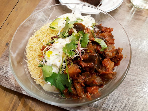 Read moreWhen we walked in, it smelled wonderful and was busy. We got there for a late lunch and all but one dish had already sold out. We ate the lentil wrap and it was delicious and filling. I loved the curry red lentils with spinach, onions and sweet potatoes. It came with a salad. My husband added the grilled soy meat and it was nicely spiced and tasted lovely. Good service and delicious, light desserts. We got an orange cake that was very nice. I...