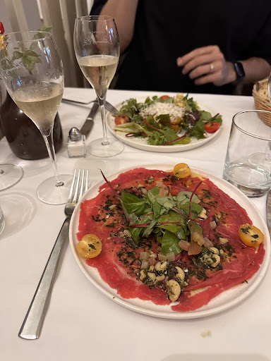 Read moreour first night here and we decided to try this restaurant our friend eat there the night before recommendation and tried it and said it was very good. We went and it was very good. I had the CBS the asparagus salad very good. One had the lamb which I thought was actually very good too, and one had the meat the steak of the day fairly reasonable price the two courses are €27 glass of wine were very reasonable, but I thought over price for half a bottle of water but I guess they can get it why not six euros I would definitely recommend this restaurant. Just know that if you’re going to order the water that you’re going to be paying...