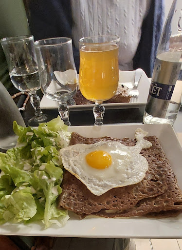Read moreLe pire serveur que j’ai eu de ma vie ! Une personne qui manifestement n’a plus envie d’être là, ni de servir des clients. Étant enceinte, jai des restrictions alimentaires, j’ai demandé poliment à ce que l’œuf sur ma galette soit bien cuit. Après une longue attente ( nous étions 2) ma galette est arrivée, avec au dessus un œuf presque dégoulinant ! Je demande poliment à ce qu’il soit cuit de nouveau ou sinon l'enlever si ce n’est pas possible, il me répond sèchement « enlevez vos couverts ». Et tout ça pour me le rapporter après une 2eme longue attente ( mon amie avait eu le temps de finir son assiette) l’œuf toujours pas cuit ! Sans excuses et sans un mots, cette fois-ci, il a eu la jugeote de ne prendre que l’œuf pour me laisser manger enfin ma galette. Quand j’eu largement fini, l’œuf cuit 3 fois est enfin arrivé. Il est ensuite venu débarrasser puis demande si on prend des desserts, on a à peine le temps de se regarder avec mon amie qu’il nous rétorque sèchement un « oui, non ?!? » Bref nous sommes parties prendre un dessert ailleurs (nous avions bien raison) et dégoûtées d’un accueil aussi déplorable. Conseil : À fuir ! Si vous voulez passer un bon moment passez...