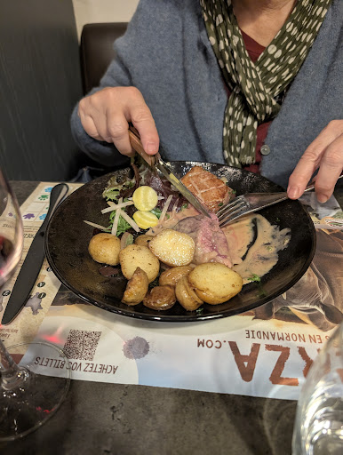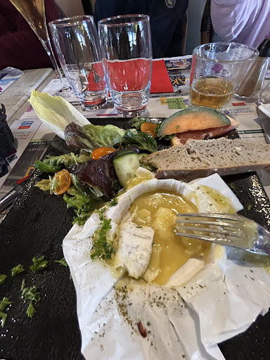 Read moreCuisine, service et ambiance rien ne vas à part la bonne humeur du patron (qui oublie juste de dire merci au revoir à l’addition…) Pas de pain durant le repas après 3 relances, le pain es arrivé une fois terminé de même pour l’eau. Les serveuses ne sont pas du tout aimables. Et la cuisine n’est pas terrible (photo ci-jointe) j’ai demandé un camembert rôti, celui-ci était servi non pas avec de la charcuterie comme la recette de base le dit, mais juste avec des légumes du coup, résultat, je n'ai mangé que le camembert… Les normes ERP ne sont pas respectées, car nous avons précisé à la réservation d’un fauteuil roulant, on nous à accepté bien sûr par contre cette personne n’a pas pu allez aux toilettes (manque de passage pour le fauteuil et toilette trop petite). Et dernier point négatif, tarif élevé pour le rapport qualité prix. Enfin bref pour conclure nous ne reviendront pas dans ce restaurant nous le notons à la même enseigne que son voisin ´ la...