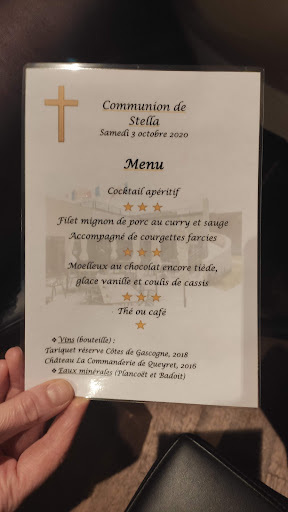 Menu unique dans le cadre d'un dîner concert. Les musiciens arrivent en retard, mais la prestation est de qualité. Excellent guitariste (Fréderik Touquet). Le son de la guitare acoustique est d'une rare propreté, avec des notes très justes et précises. C'est un régal. Un batteur de talent Dominique Youl), le tout servi par la clarinette Gilles Véron) et la contrebasse (Lemarchand). Les morceaux ont été étudiés et travaillés. Une belle excursion dans le jazz des années vingt et trente en hommage à Benny Goudman et au guitariste Charlie Christian.