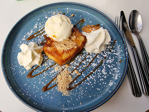Read moreit is very close to our hotel so we thought we give it a try. The food was good nothing exceptional. I had the sea bass came with some vegetables, not ordering a side salad. We also had the risotto with vegetables and the dessert which was a apple and rhubarb crumble. Everything was good. The service was very slow. They were busy and it is a Monday night, so there’s probably not a lot...