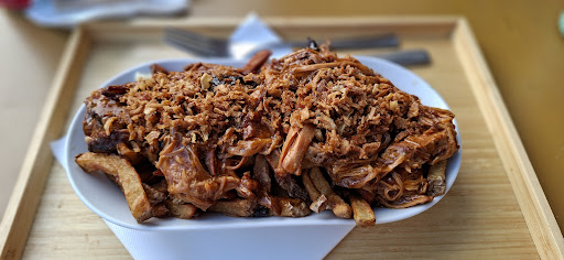We're from Quebec and have been living abroad for nearly 7 years. We loved poutine back home and have been searching for the good stuff since we moved. THIS is legit poutine. Tiny bit saltier than what we're used to, but the cheese is imported from Quebec, and the recipe is just about spot on. Take the Classic—the gravy/fry/cheese ratio is perfectly balanced. The cheese is melty enough yet still squeaky. The portions are massive. We also tried La Normande (because I wasn't convinced the poutine would taste like home, since I've tried so many since being abroad), and that was an original twist. Who would have thought to put Camembert in a poutine? Definitely go if you're a Quebecer. Definitely go if you've heard of poutine and have never tried it. This is the good stuff, folks. The staff was smiley and friendly (which seems to be a rarity in the area), and were happy to answer questions. They do takeaway, so don't worry if there's no place on site, there's some lovely outdoor seating across the street...