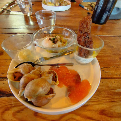 Ensuite la succession des entrées (tapas ce jour-là ), repas et le dessert étaient incroyables. Tout est excellent, de saison et régional. Un délice vraiment ! Je ne pourrais pas décrire à quel point j'ai adoré mon repas. Je compte repasser à Caen et je sais déjà où j'irai manger !