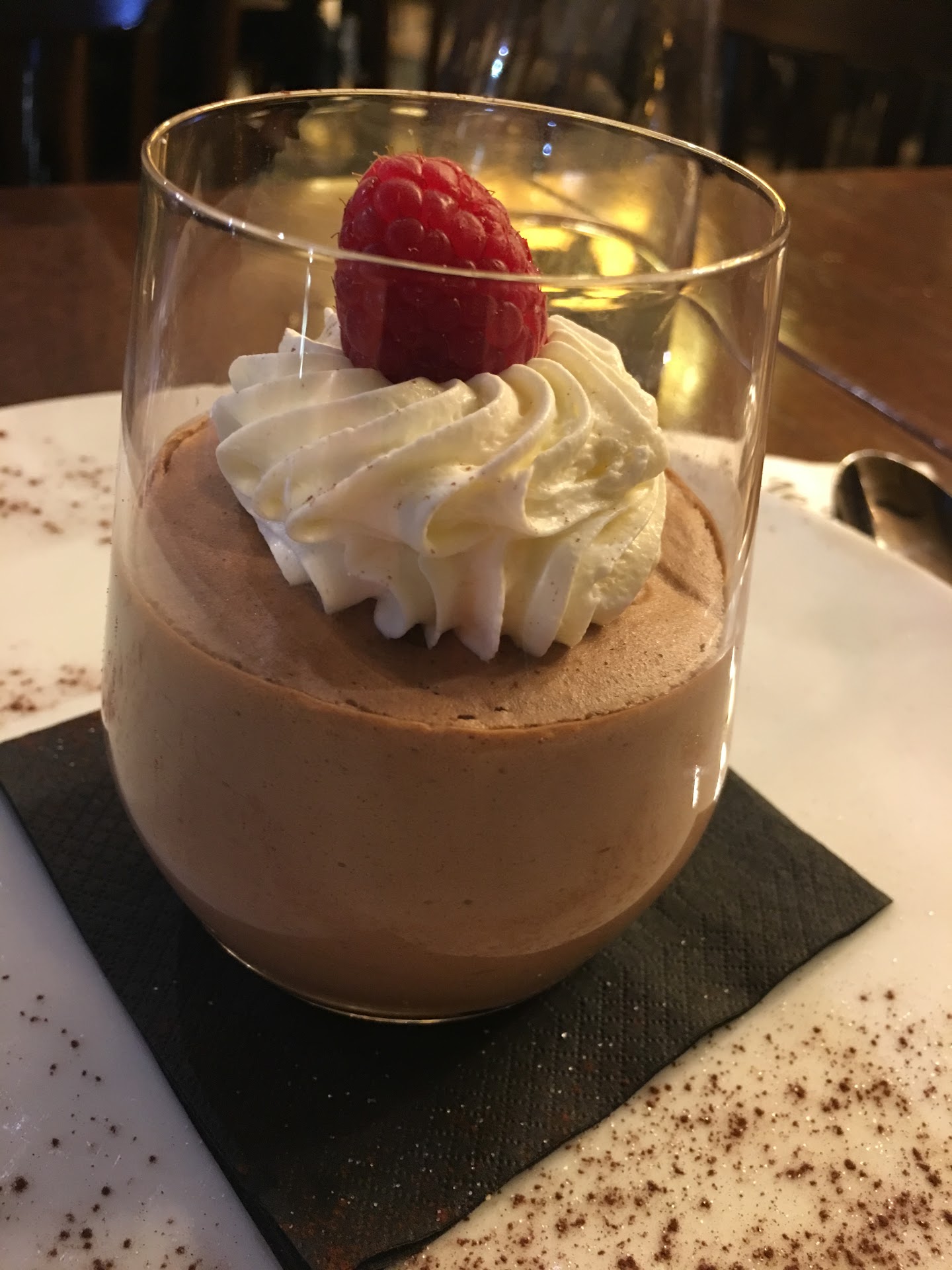 Read moreC’est l’américano bien préparé et bien servi en terrasse qui m’a fait rentré à la brasserie Le vin de Cahors croisillon proposé à 14€ en 50 cl est très bon La mousse chocolat est très bien voir photo aussi belle que bonne ! L’agneau rôti à la crème d’ail rose est cuit à la poêle au lieu du four ‘ la tranche servie fait à peine 1 cm d’épais et même si coupée dans le gigot qui est bonne MAIS c’est un peu juste pour un plat à 14€50 avec des frites trop fines pour faire ´tendance ´ et une couleur de frites brunâtres comme si l’huile n’était pas d’hier... bref pour de meilleures frites et un meilleur agneau ‘poêlé ‘ pourquoi pas mais avec 2 tranches pour quelqu’un qui aime ’à point’ ou une de 2 à 3 cm Epais rosé ou saignant même à 22€ j’aurais pris cet agneau car j’aime ça et si le restaurateur a besoin de 22€ pour le servir bien ‘qu’il le fasse! Car le nom d’un plat ne doit pas perdre ses lettres et son poids’ Je pense qu’il vaut mieux dire d’un restaurant qu’il est de qualité copieux et un peu cher que ´abordable ´ mais Chichement servi Je ne connais pas les autres plats mais l’agneau et les frites doivent être ‘REVUS’ même si bien préparés malgré l’erreur annoncée entre rôti sur la carte et servi poêlée Il faut garder quand même le personnel et le ‘patron’ pour un service agréable et sympa! mais aussi ‘le PÂTISSIER ‘ et le BARMAN Mais je reviendrais et espère noter 4 ou 5 * car je sens...