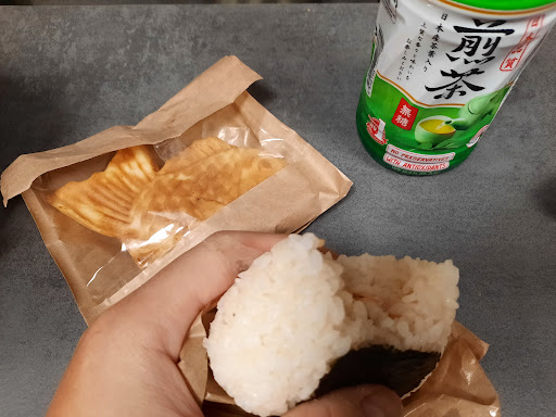 Pour le repas, j'avais commandé 2 onigiris 🍙 et 1 taiyaki à la crème pâtissière (+ quelques boissons).