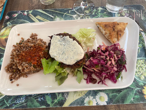 Nice food. This is a veggie restaurant run by Armenians. My experience didn’t meet the effusive praise and near perfect 4.9 rating here, but I did have a very enjoyable, and good value meal. The menu is a bit difficult to work out, not just because it’s in French and unfamiliar veggie food, but because it’s not that clearly written on the blackboard. So I effectively ordered “blind” - although I’m not food fussy. The food was delicious and served efficiently. They didn’t have any rose (pity) so I had a glass of white. As with the water, it was tepid rather than cold and I wasn’t impressed to start with. But some ice cubes helped improve the wine considerably so ultimately it was okay but nothing special. My starter was a vegan sausage on a bed of lettuce and bread. It was generous and tasty. Main was some kind of bulgar wheat gallette with noodles and cabbage salad. It was delicious. The large terrace is a nice place to eat though the small interior of the restaurant less charming. The matriarch was very pleasant and engaging. I would certainly return because despite some details that could’ve improved, the food was delicious and the experience...