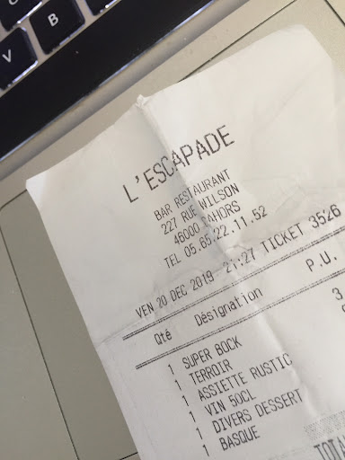 Lots of "fast food" and 2 or 3 plates of the day. A basic decor enhanced by many chalk boards showing what is on offer. We stumbled across LÉscapade by accident and were attracted by its different approach. The service, food and drink were really good. I am sorry that we missed the chance to try the burgers - they looked splendid - but the plates of the day were excellent. The pichets of wine were great and the price was super value for money....