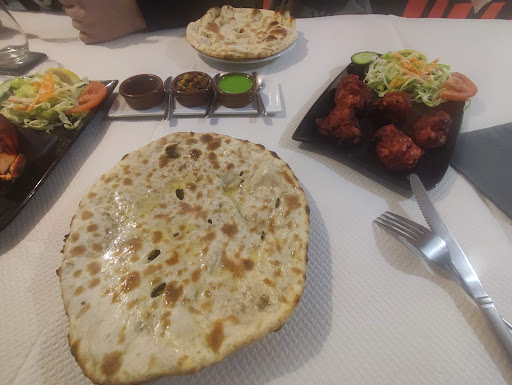 Read moreDîner pour 3 personnes (2 enfants 1 adulte). Nous sommes arrivés peu après 19h, toutes les tables étaient dressées on nous a installé très vite. La serveuse, très gentille nous a bien conseillé, a proposé une assiette de plus pour partager plus facilement les 2 entrées choisies à 3 ainsi que le délai a prévoir pour le saumon. Entrées accompagnées de 3 sauces aussi bonnes et dépaysantes les unes que les autres. Pour les plats, pareil la serveuse a proposé un seul plat de riz pour nous 3 et si besoin de la recontacter (résultat : on a emporté le premier plat de riz qu'on a pas pu finir) Les plats sont servis dans un bol, en sauce, c'est pas le plus sexy mais chacun peut dresser son assiette de cette façon. J'ai trouvé la sauce vindaloo épicée. Pour finir, note a 70€ pour 5 "plats" et 2 nann. J'ai préféré la nann nature a celle a la viande qui s'accorde mieux avec le saumon ou le poulet. Pas encore de carte ticket restaurant (papier uniquement) ni chèque vacances. Carte bleue acceptée et doggybag proposé. Un très bon moment on reviendra où on fera a emporter. Malgré l'équipement visible il n'y avait pas de petite musique de fond... Mais je...