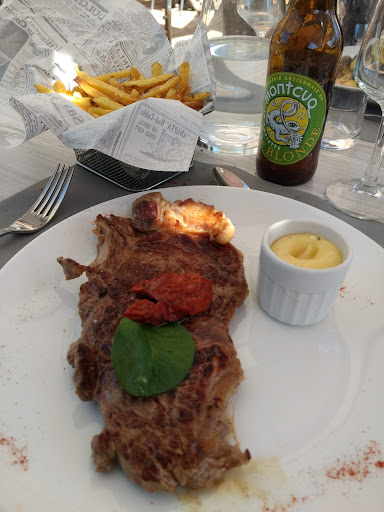 Read moreCe n'est pas la première fois que nous venons, mais ça vaut la visite pour ceux qui aiment la cuisine simple, bien faite. Un large choix de plats, pour tous les goûts et beaucoup de plats de terroirs. Le personnel est très gentil et efficace. Un midi, par un ciel gris avec risque d'averses, nous avons préféré manger à l'intérieur, nous étions les seuls ;) Un bémol, déjà pendant l'apéritif et l'entrée, le personnel a cru nécessaire d'enlever complètement tous les couverts et verres des autres tables de la salle, en les emportant sur des plateaux, pour les remettre 5 minutes après, les mêmes!, juste après avoir changé les sets de table pour le soir, il était env. 12h30! Ca a un peu cassé l'ambiance pour nous, même seuls, on se demande si on n'était pas de trop... :( Peut-être, à revoir! A part ça, rapport qualité/prix plus que correct, tout était bon! Nous avions en entrée un pâté de campagne et un duo de carpaccio de St. Jaques et saumon fumé (avec beaucoup de salade trèèès fraîche, quasiment un plat); en plat un tartare de boeuf/frites et un magrets de canard/sauce vigneronne et légumes de saison (vraiment très bons et on vous demande la cuisson que vous aimez SVP!); en dessert, moi, la gourmande, j'avais pris le café gourmand, hyper bien servi! et mon mari une mousse au chocolat. Donc, dans l'ensemble, ça s'est plutôt super bien passé et je recommande ce restaurant! Le prix indiqué comprend l'apéritif et une bouteille de vin et le repas à la carte. Sinon il y a une formule en semaine ou un menu à moins de 30 Euros. Pour le parking, si vous venez de bonheur, il y a de la place juste devant, sinon il faut chercher un...