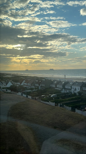 However, when you get out of the lift onto the top floor you walk into a large dining room with panoramic views of the English Channel. On a clear day you can see England.