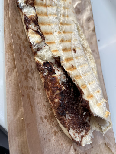 La petite pause se transforme en très très longue pause… 30 mins pour 3 paninis au nutella … Ils sortent avec des morceaux d’anciens paninis grillés ( un nettoyage qui ne doit pas être top) et sincèrement, nous avons chercher le goût du nutella … Pour la prise de commande pas de soucis , la petite rousse fort aimable et sympathique… Pour le reste du personnel, ils ne sont pas étouffés par la joie de vivre … Alors fin de journée ou pas , il faut juste savoir rester commerçant et surtout quand on oublie de mettre l’appareil en chauffe, simplement signaler qu’il va y avoir un peu d’attente . Bref, être...