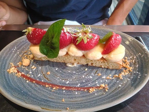 Read moreA truly delightful experience at Le Grand Bleu, from the moment that we walked through the door we were taken great care of. We ate in the covered terrace area with a view of the sea, an extremely clean, light, airy and tastefully decorated room. The staff were very attentive, discrete in their work and gave concise answers to my many questions! The table presentation, crockery and glasses were of high quality and I particularly liked the mini hoover that was used to eliminated bread crumbs. *The meal was amazing! I had the 30⏠menu, a delicate taster dish, followed by the haddock, prawn and pickles, followed by the mouth watering crispy braised beef cheek and dessert mille feuille chocolate and salted caramel mousse with caramelised peanuts. The 3 courses were absolutely delicious, ample portions and beautifully creative presentation and outstanding value for money. A fresh glass of champagne when I arrived and a glass of rose during my meal. Our little westie was also welcomed and given a small bowl of water. I highly recommend this wonderful restaurant and hope to be able to return in the future to relax and taste the Chefs unique...