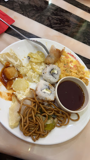 Read moreArrivée 12h,accueil chaleureux, très propre y compris les WC , mis à part que nos pieds collent au sol par excès de produits nettoyage... Buffet bien varié, déception sur tout ce qui est beignets car pâte tellement épaisse qu'on ne sent que çà. Gamme de sushis intéressante et ils sont très bons. Par contre ÉNORME DECEPTION SUR LE "WOOK": je m'explique, pour moi un wook est une poêlée assaisonnée de ce qu'on présente donc pour moi (gambas, crevettes, calamars et champignons), je demande une sauce aigre douce, À MA GRANDE SURPRISE!!!TOUT EST PLONGÉ ET CUIT DANS L'EAU HYPER BOUILLANTE, PUIS JUSTE ÉGOUTTÉ VITE FAIT, REMIS DANS LE WOOK, AJOUTÉ UN PEU DE SAUCE ET LAISSÉ À PEINE 30 SEC....DONC RÉSULTAT : CARREMEMENT LE GOUT DE FLOTTE POUR TOUT, LES CALAMARS PAS CUITS...Franchement hyper déçue 😞 Aucun rapport donc avec la définition du wook comme on l'entend...dommage car de la marchandise gâchée à cause de cette façon de cuire "A LA...