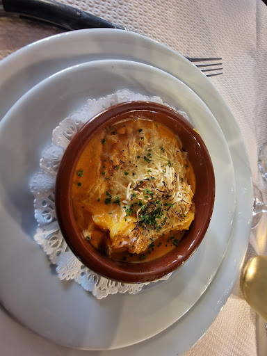 Visited here today without a reservation and we were very lucky to get a table. Half carafe of wine for 8 euros and two starters and main courses for 30 euros. Couldn't manage a dessert as we were both very full. I had a chicken and mushroom vol au vont to start, hubby had charcuterie plate. We both had veal as the main. Everything delicious and plenty of it. Lovely traditional restaurant with a choice of three starters and mains. It was very busy, which speaks for itself. We are English and probably the only ones in there. I'd urge more to sample the delights of this friendly...
