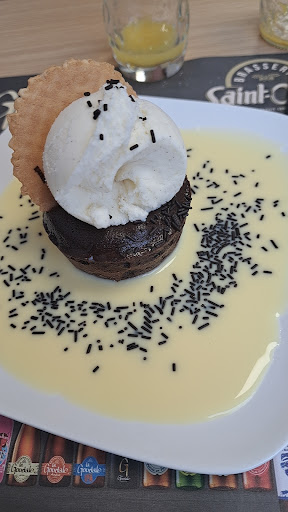 Nous recherchions un resto de quartier avec une terrasse afin de déjeuner au soleil et avec une très belle terrasse comme ça,nous voulions en profiter.Très bien reçu avec des patrons et le personnel au top et surtout la gentillesse et le sourire.......ça change de certains endroits!!!J'ai pris 1 très bon tartare de boeuf frites salade et mon épouse un camembert frit car elle ne connaissait pas ce plat et en a dit que du bien.Je passe sur l'excellent fondant au chocolat en dessert.Les 2 autres personnes qui nous accompagnaient étaient tout aussi ravies du repas.Donc à refaire le plus tot possible tant qu'il y a du soleil.A l'intérieur la salle de restauration est très aérée et claire...