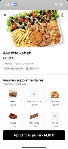 Read moreJ'ai déjà commandé plusieurs fois et j'ai rarement été déçue. Mais la plus d'une heure d'attente, le kebab en menu enfant hyper épicé (mon fils n'a pas su le manger et j'ai moi même eu du mal, c'est pour dire!) par contre très copieux même pour un kebab menu enfant compliqué de le finir il est bien garni! Pour le H2 il est tout raplapla et pas très appétissant visuellement (par contre le goût rattrape c'était bon). Pour ce qui est des frites vraiment pas terribles toute fade sèche molles a croire que ça a été cuit et recuit et re recuit... En bref, je recommanderai seulement si c'est les seuls dispo au moment où on aura envie de commander... Oh et pas de jouets ni de dessert dans le menu enfant,...