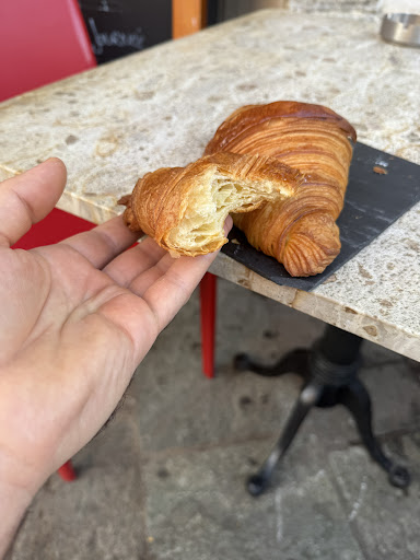 Je précise que nous sommes des locaux pure souche impossibles à confondre avec des pinzutti. Par souci d'hygiène mentale, cela faisait près de 10 ans que je ne mettais plus un pied ni à Calvi, ni à Portivechju, deux endroits à fuir pour les locaux en plein été. Mais nous étions invités au mariage d'amis très proches à Calvi et la journée a commencé sur les chapeaux de roue en arrivant à l'hôtel, lorsque j'ai stationné notre véhicule dans une ruelle à double sens proche au dessus de la route de la Revellata où les parcmètres tournent à plein régime : 1€ la 1ère 1/2h, 2€ pour 1h, 4€ pour 2h, 5€ pour 2h30, et pour finir en apothéose, on peut se garer au maximum 3h, mais ça ne coûte que la bagatelle de 17€ ! Et cela 7 jours sur 7, de 9h à 21h, même les dimanches et les jours fériés 🤪. Le top, c'est que les emplacements sont optimisées au millimètre pour ne laisser passer qu'une seule voiture en slalomant entre les places, un truc du niveau de la NASA. Lors du repas de mariage, ma compagne, ma fille et moi avons trouvé le feuilleté des amuses-gueules bien développé et surtout avec du beurre. De plus, le pain était également bon. Friands de viennoiseries, nous avons pensé le lendemain prendre un petit déjeuner à cette boulangerie. Bonne surprise de trouver, enfin, une boulangerie qui ne propose des viennoiseries non pas à base de margarine, mais uniquement au beurre ! Nous commandons deux petits déjeuners avec pain au chocolat pour ma compagne et moi-même, ainsi qu'un jus d'orange et une brioche pour ma fille. Le 1er étonnement a été lorsque l'on demande au jeune serveur quelles étaient les variétés de jus de fruits disponibles dans la formule petit déjeuner. Ce dernier nous les présente oralement mais une personne qui semblait être la responsable de la boulangerie nous dit sèchement que c'est écrit à côté sur un petit tableau écrit à la main avec tout un tas d'informations. En temps normal, je serais parti mais j'ai pris sur moi en présence de la famille. Une serveuse nous amène notre commande à la table où nous nous étions assis. Je trouve mon pain au chocolat bon, dans l'esprit de ce que j'avais mangé au mariage. Mais ma compagne me dit que le sien est rassis, comme s'il était de la veille. De plus, il manquait les couteaux pour faire nos tartines. Je retourne donc vers le comptoir avec le panier où j'avais laissé le pain au chocolat immangeable. Je tombe sur la fameuse responsable qui avait été désagréable lors de la commande. Je lui explique gentiment que le pain au chocolat n'est pas le même que l'autre et qu'il nous manque des couverts. La réponse de cette dernière est sèche : "C'est impossible, ce sont tous les mêmes !" J'ai répondu "Ok, je n'ai pas envie de perdre mon temps, mais donnez-moi mes couverts…" J'avais l'impression de l’agacer, car elle les a demandés à un autre employé et ne s'est même pas excusée. Son manque de professionnalisme ne s'est pas limité à cette réponse pour son pain au chocolat rassis — dont je n'ai même pas demandé à ce qu'elle me le change — elle m’a donné de la main à la main les couverts. Je lui ai donc laissé sa corbeille avec son pain au chocolat immangeable et je suis retourné à ma table. Nous avons fini notre petit déjeuner, mais je ne m'attendais à rien de plus. Dernière précision sur cet instant mémorable : le cappuccino était imbuvable alors qu’ils sont censés avoir du café illy. Les italiens doivent tourner de l’œil lorsqu’ils boivent ce jus de chaussettes.
