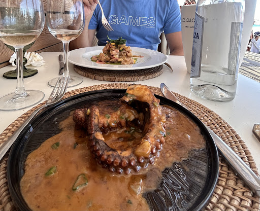 Read moreNourriture très bonne, plage et mer superbes. Parcontre gros bémol, on nous sert du muscat pétillant à la place du champagne... Étant champenois et travaillant dans le domaine du champagne nous savons faire la différence entre un muscat et du champagne... Très mauvaise fois des serveurs... qui nous disent que c'est bien du champagne mais nous racontent une histoire qu'ils ne vendent plus de muscat car ce n'est plus à la mode mais que nous avons quand même bu du champagne d'après eux sachant qu'ils nous vendent du champagne brut donc non sucré alors que ce que nous buvons est sucré.... De plus, après nous avoir tout de même offert du "vrai" champagne, je vais aux toilettes et entends des sombres critiques à notre sujet... Ils nous ont pris pour des lapins de 6 semaines... et vraiment les serveurs étaient de très mauvaise fois ... Le champagne c'est du champagne pas du muscat qui ne...