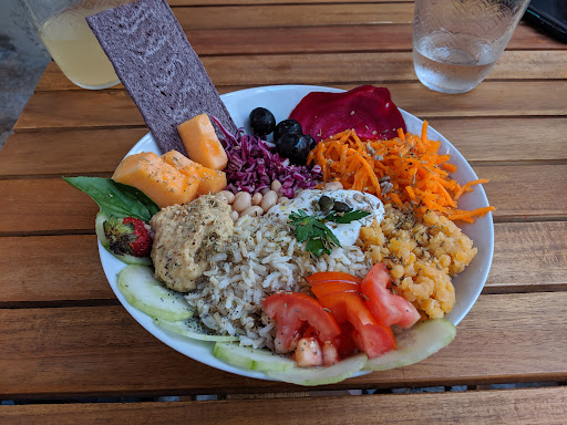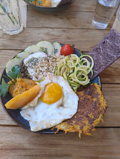 Read moreFood is mostly raw not cooked, no bread, the resturant is small with couple tables, am sure food quality is probably bio but the quantity is not sufficient, at least for us, we had to buy bread from a near by Boulangerie and to eat again in a nearby resturant. We took the vegetable muffin and the vegi bowl.