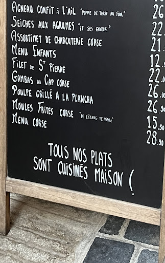 Read moreSi vous souhaitez bien manger et goûter des spécialités corse passez votre chemin ! "Charcuterie corse" qui n'en a que le nom, insipide... quand au plat.. immangeable. Nous avons commandé du veau façon corse avec des gnocchis. Voilà ce qui été présenté sur la carte. On nous a ramené du sanglier avec des penne. Alors ça ne nous aurait pas dérangé du tout si cela avait été bon. Mais vraiment immangeable. D'une acidité extrême. On préviens le serveur que ce n'est pas du veau mais du sanglier. Il maintient que si c'est bien du veau ou éventuellement du sanglier.. même pas d'excuse. Il nous dit que c'est comme ça... il nous prend pour des lapins de 6 semaines. Enfaîte ils vous servent un peut ce qu'ils veulent. On lui dit que le plat est extrêmement acide et pas mangeable, il dit que c'est normal.. "c'est la façon corse" il a vraiment réponse à tout. Quand au dessert soit disant maison... il n'a rien de maison, il n'est pas bon et la mini portion est à mourir de rire. Je rajouterai que le menu enfant est une honte, des frites décongelé dégueulasse et farineuses. Des nuggets du commerce et même pas une boule de glace mais une glace nesquick à moitié décongelé déjà. Forcément une addition bien salé pour n'avoir casiement rien mangé. Passez votre chemin pour 4-5€ de plus vous avez des restaurants milles fois meilleur avec du...