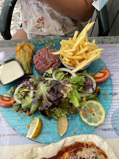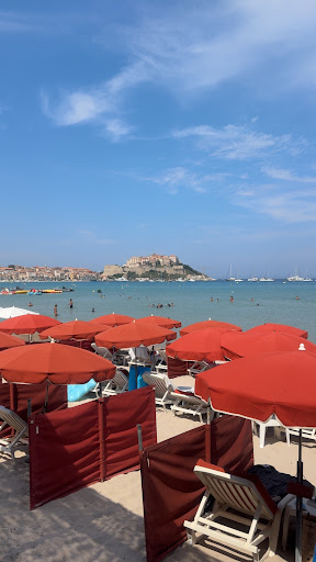 Took a day on the beach and chose here after popping in for a reasonably priced drink a couple of days earlier. Best to reserve your sun lounger (transat) as early as possible (we did it two days in advance). You get a table for lunch reserved at the same time so you can break your time in the sun whenever you want. Very attentive staff and you simply have a tab which you settle up at the end of the day along with your sun loungers (which was âŹ30 for two of us). These are comfy and include wind breaks either side, a good size brolly and a small table. The food portions are generous and tasty, served with a great view and a...