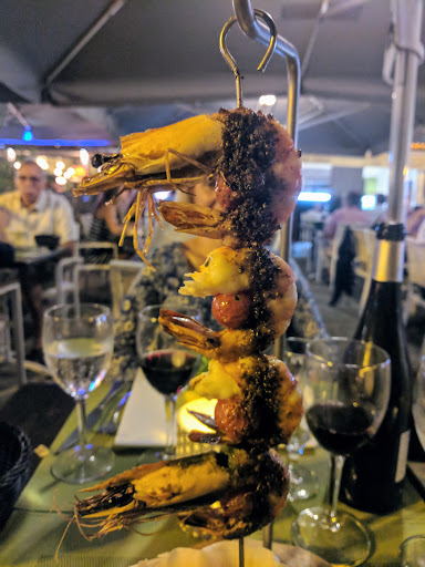 Move on. Everything on this strip is the same price and this isn't worth it. They're relying on other restaurants' light for their atmosphere. After the starter I was going to say 3, and that the kitchen were doing better than the waiting staff. Then my grilled prawns arrived dangling from a gibbet, above a handful of salad from...